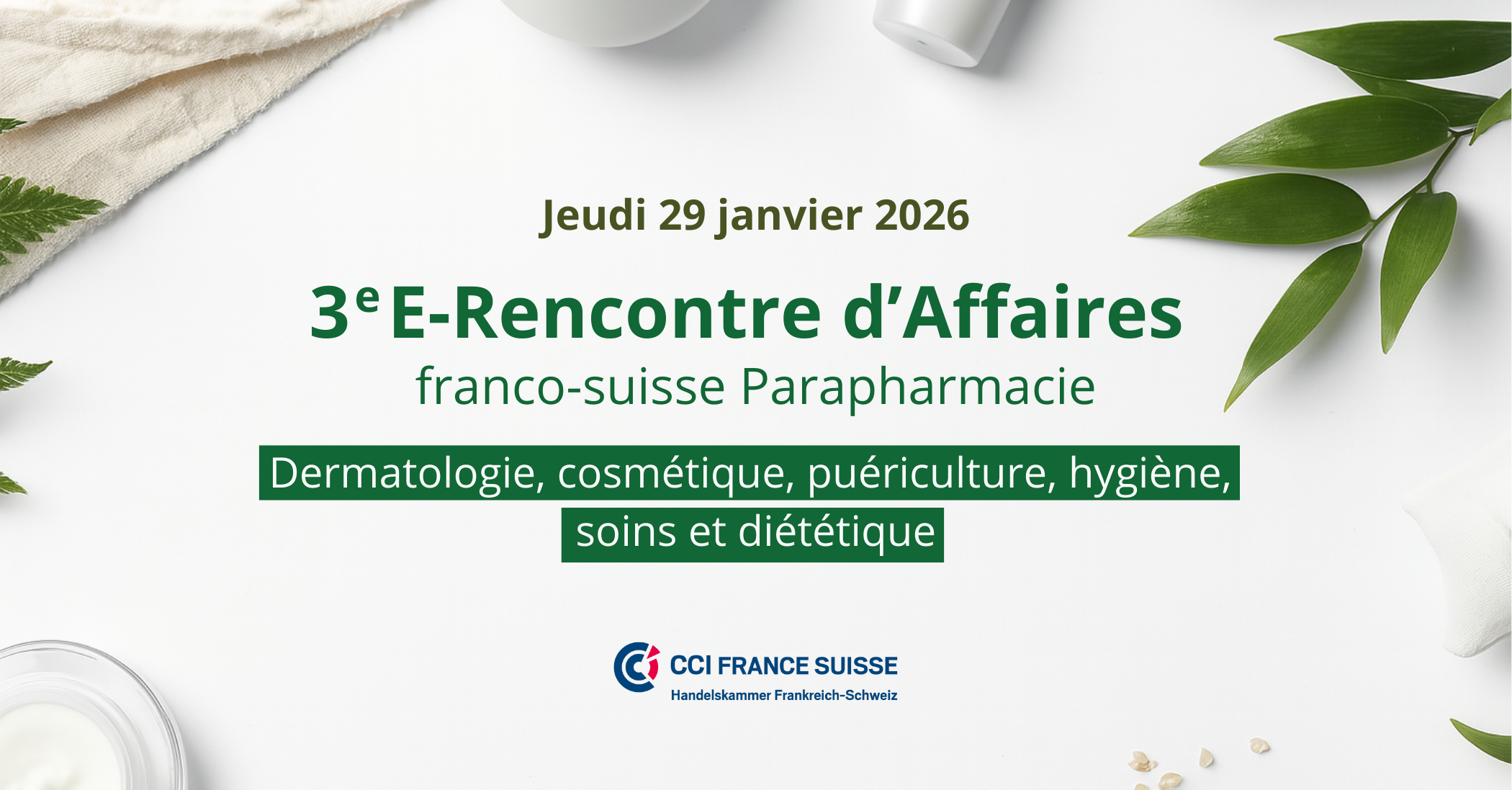 Rendez-vous le jeudi 29 janvier 2026 pour la 3e édition de la E-Rencontre d’Affaires franco-suisse dédiée au secteur de la Parapharmacie.