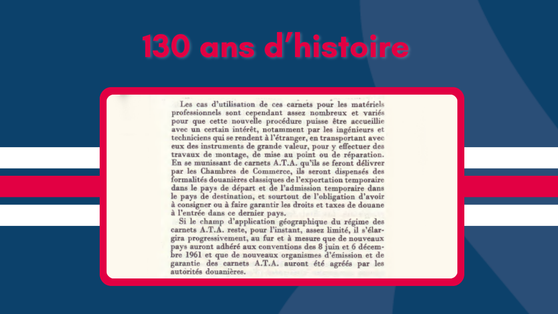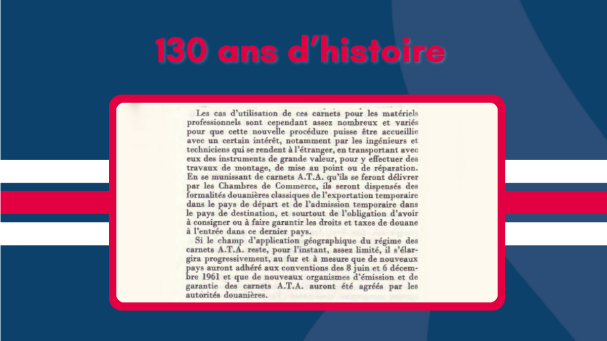 Alors que nous célébrons nos 130 ans, revenons sur une initiative déterminante des années 1960 qui a marqué un tournant dans les échanges commerciaux entre la France et la Suisse : l’introduction et la promotion des Carnets A.T.A. (Admission Temporaire/Temporary Admission). Ces carnets, conçus pour simplifier les formalités douanières, ont permis aux entreprises d’importer temporairement des biens sans payer immédiatement de droits de douane ou de taxes.