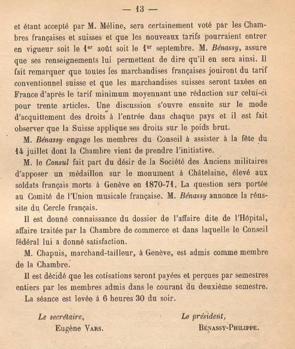 - "M. Bénassy engage les membres du Conseil à assister à la fête du 14 juillet dont la Chambre vient de prendre l’initiative."