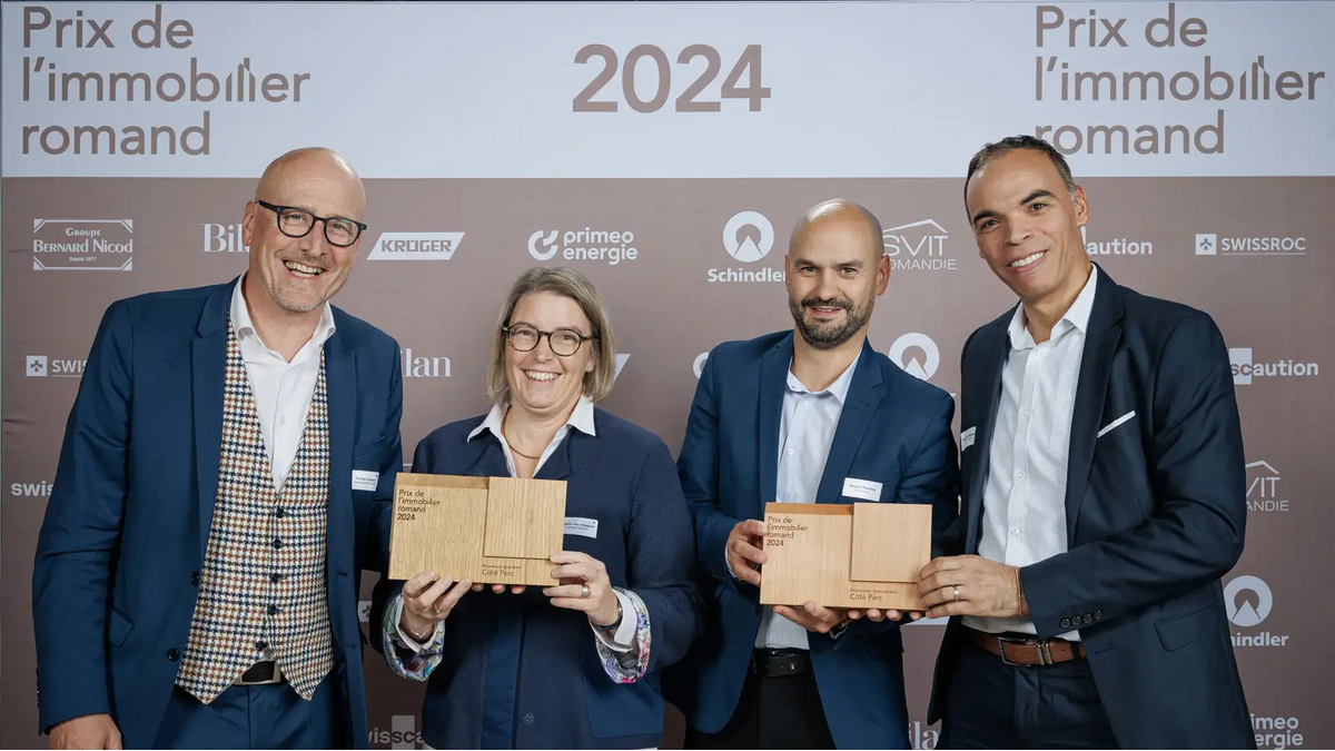 Côté Parc, projet de régénération urbaine conçu par Losinger Marazzi et propriété d'IFSA - La Foncière, a été doublement primé lors du Prix de l’immobilier romand 2024.