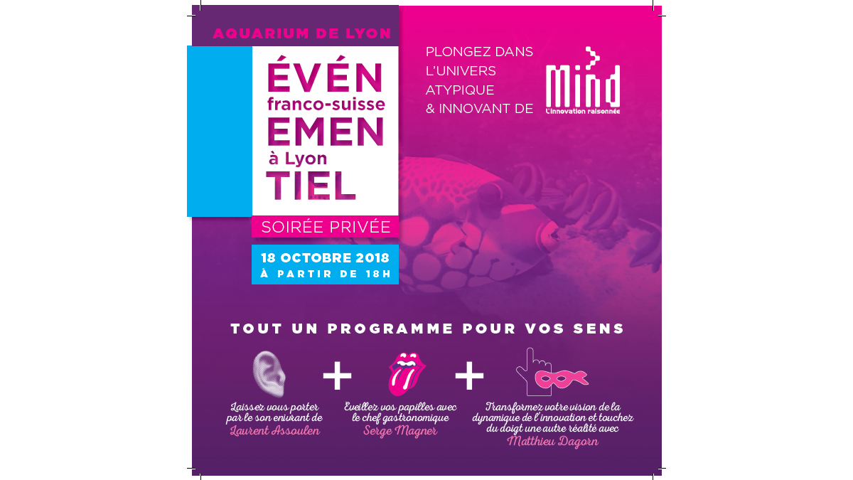 MIND, Plateforme technologique franco-suisse organise une fête privée, jeudi 18 Octobre 2018 à l’Aquarium de Lyon.