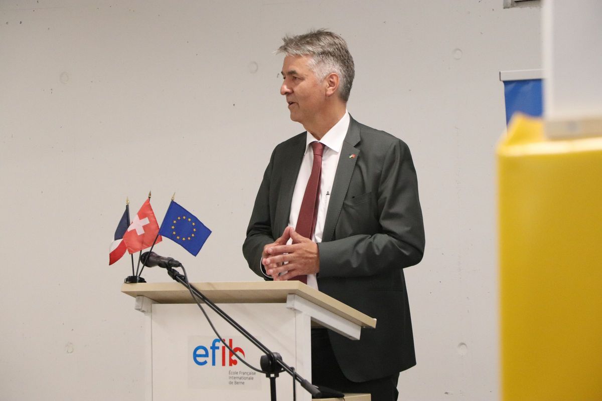 L’Ecole Française Internationale de Berne a été inaugurée officiellement mardi 31 mai en présence de M. l’Ambassadeur de France en Suisse et au Liechtenstein, Frédéric Journès, M. le Maire de Bern, Alec von Graffenried, M. Pierre Etienne Zürcher, Secrétaire Général adjoint de la DIP et Président de la COFRA ainsi que M. Jean-Paul Négrel, directeur adjoint de l’AEFE.