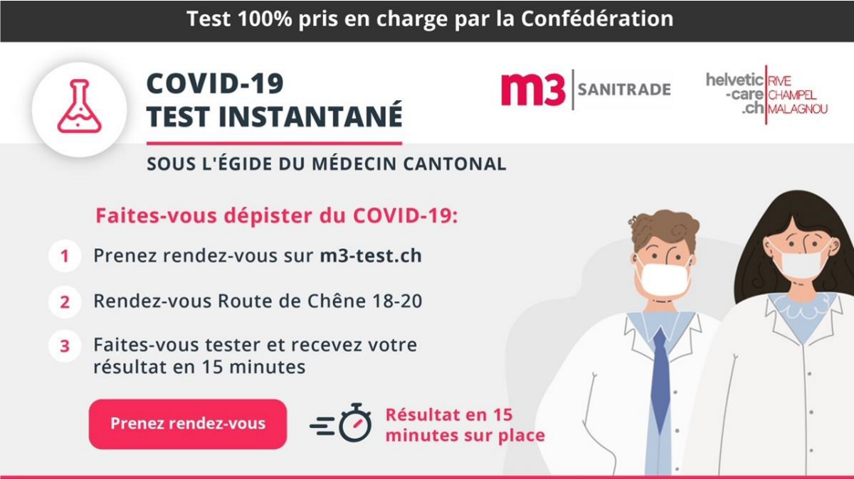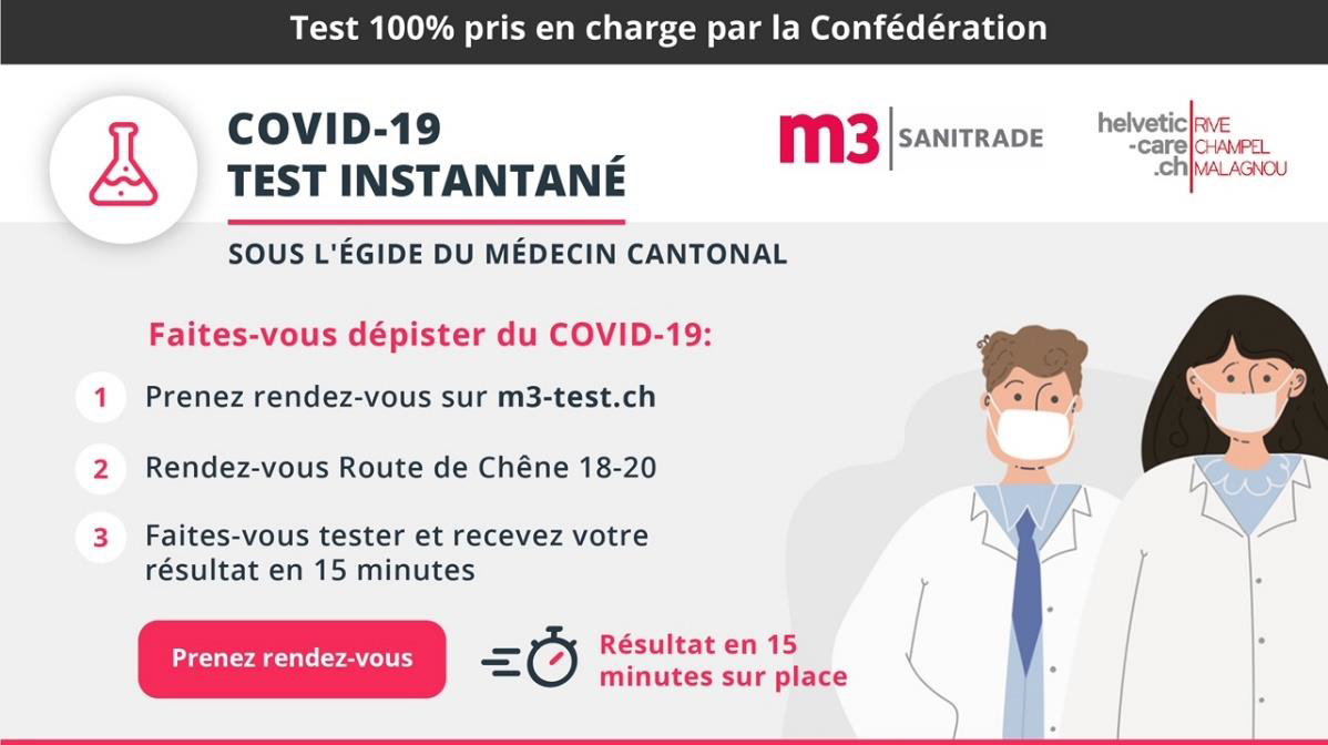 Prise de rendez-vous sur le site : www.m3-test.ch