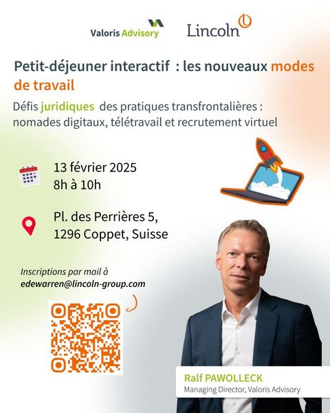 Rejoignez cette rencontre pour un partage interactif animé par Ralf Pawolleck, Managing Director de Valoris Advisory, conseiller expérimenté en stratégie de mobilité internationale et expert en droit fiscal et social suisse et international.