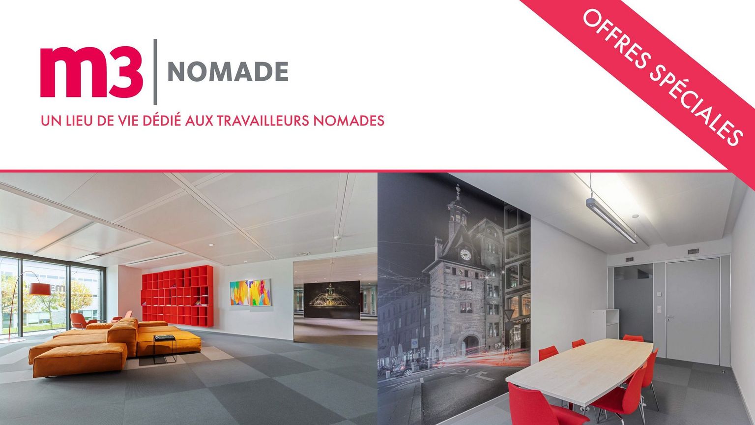Offres spéciales coworking et bureaux avec m3 NOMADE !