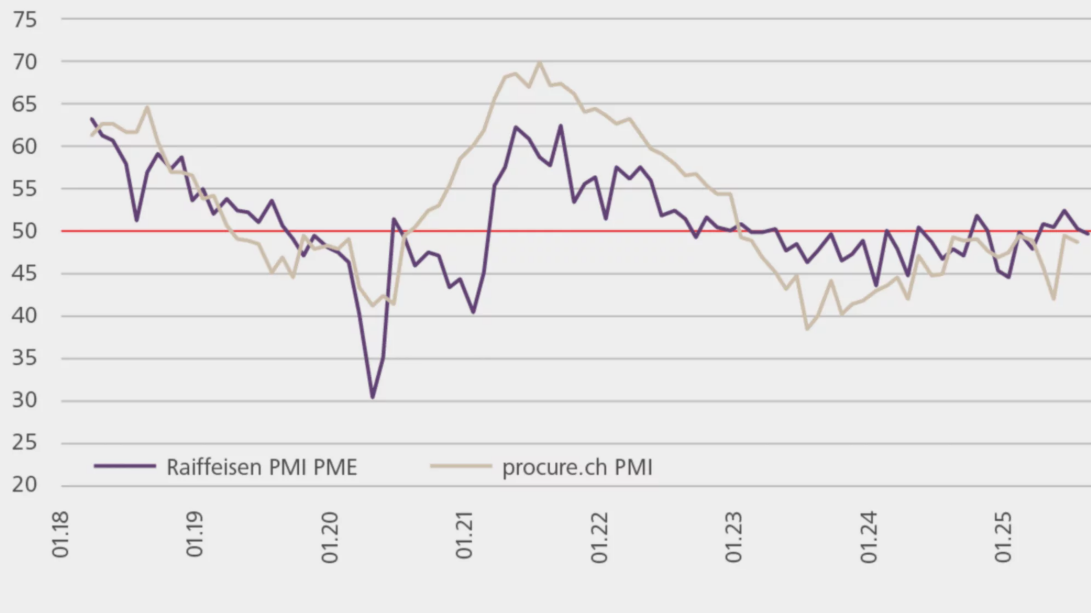 Point sur le PMI PME (indice économique), baromètre de la situation économique des PME suisses. (Raiffeisen)