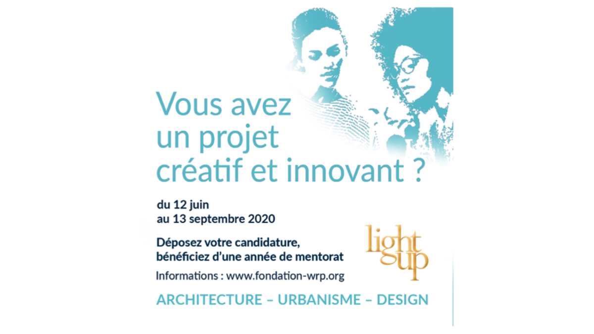 Vous avez moins de 35 ans, vous exercez votre activité professionnelle dans le domaine de l’urbanisme, l’architecture ou encore le design en Suisse, en France ou au Maroc ? Vous avez développé, seul ou en équipe, une création innovante ou vous avez un projet concret qui vous tient à coeur ? Dans le cadre du programme de mentorat Light’Up porté par la Fondation WRP, participez à l’appel à candidatures ouvert du 12 juin au 13 septembre 2020.
