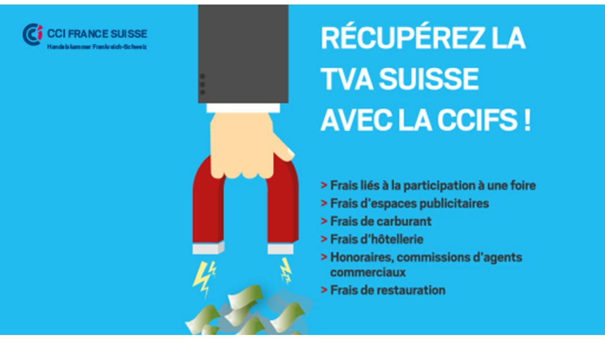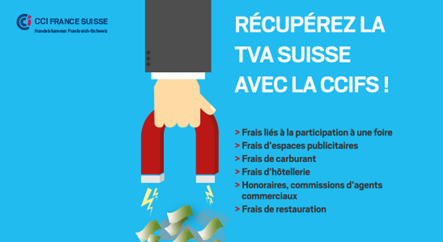 La CCI France Suisse récupère pour votre compte la TVA payée en Suisse et en Europe à l’occasion de vos déplacements, participations à des salons, prestations de SAV ou chantiers réalisés sur sol étranger. Notre équipe est à votre disposition pour réaliser ces différentes démarches en votre nom.