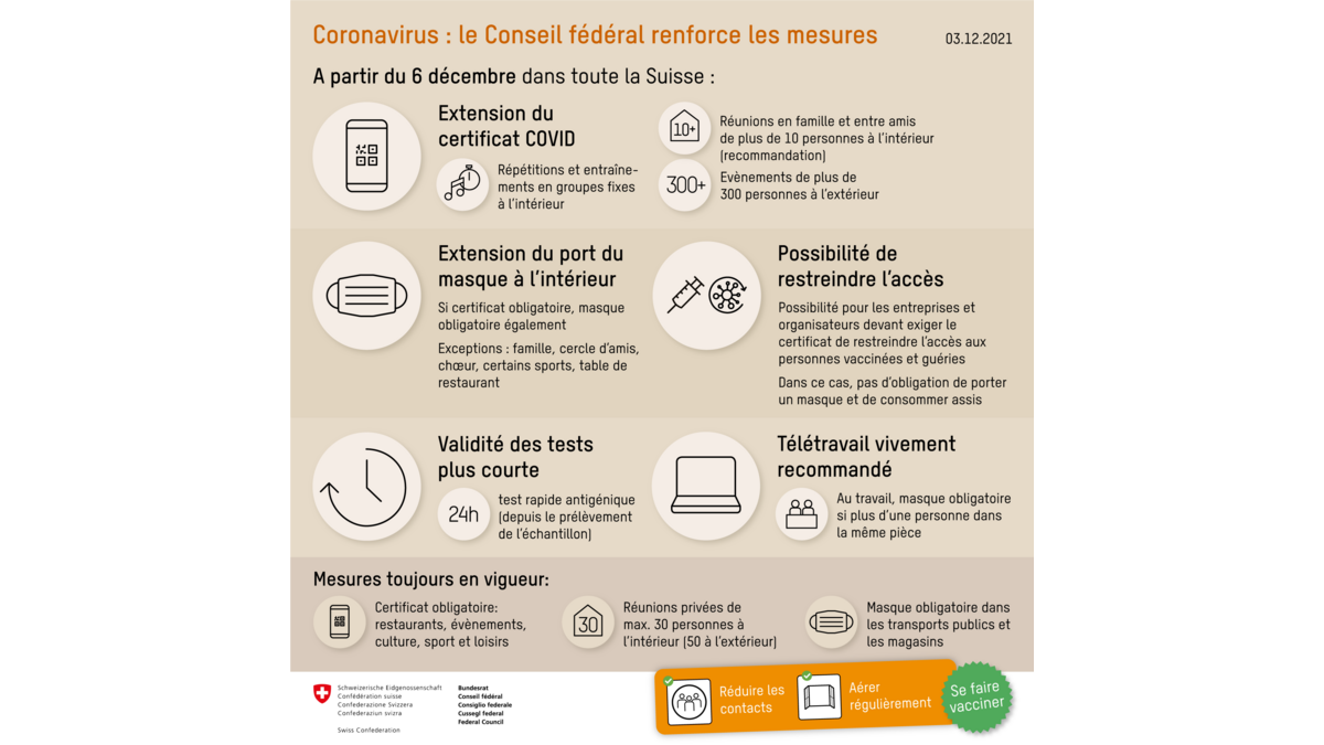 Règle des "2G", réunions privées, masque et télétravail – Les nouvelles mesures du Conseil fédéral contre le Covid-19