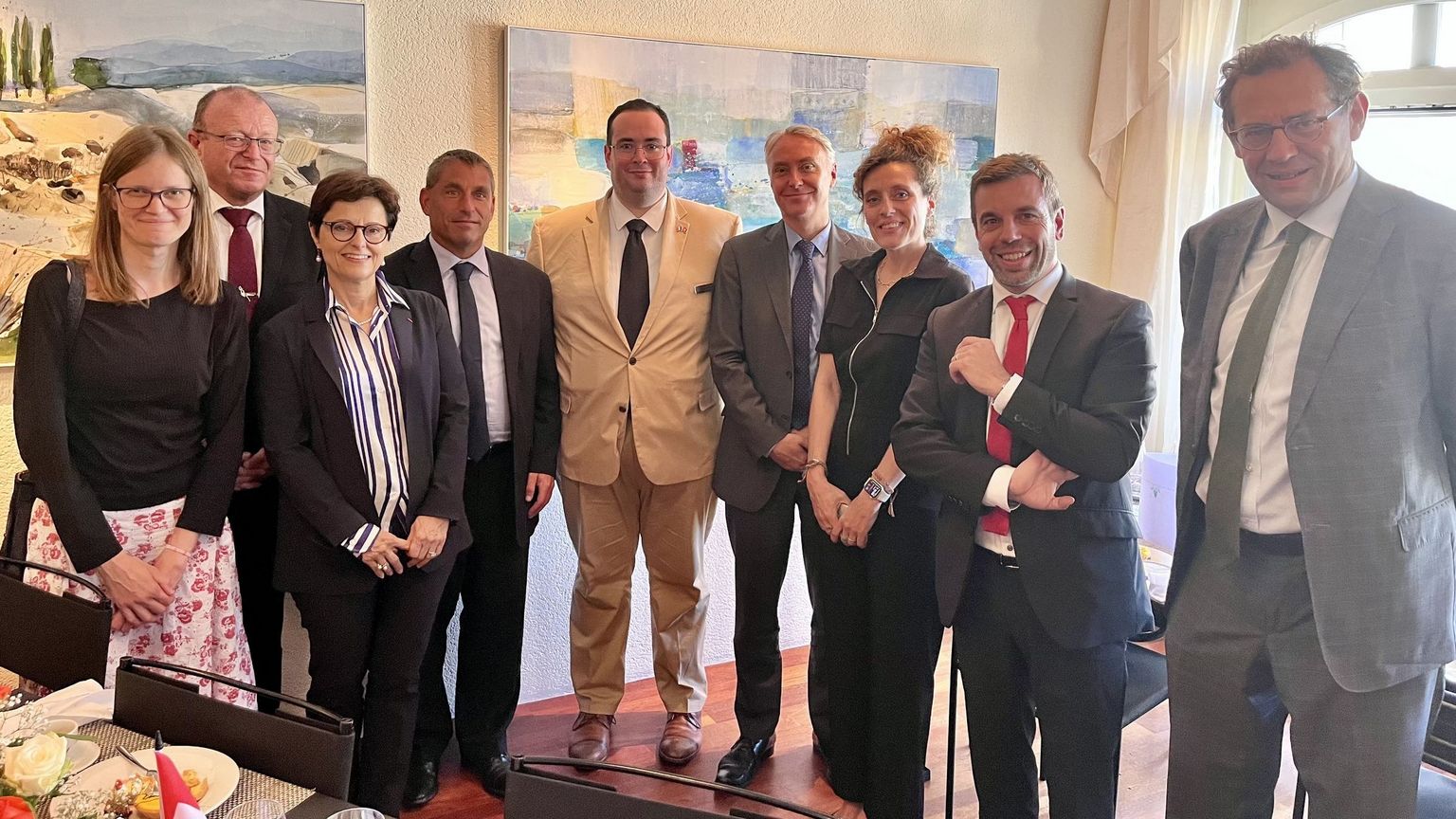 Cet évènement a réuni Madame Marion Paradas Ambassadrice de France en Suisse, Monsieur Thibauld Manson Attaché fiscal pour l’Allemagne, l’Autriche et la Suisse à l'Ambassade de France à Berlin, Monsieur Patrick Mayer Vice-Président de la CCI France Suisse, Madame Simone de Montmollin Conseillère Nationale (GE), Madame Brigitte Crottaz Conseillère Nationale (VD), Monsieur Jean-Luc Addor Député au Conseil national (VS), Monsieur Gilles Bordes Chef du Service économique de l’Ambassade de France à Berne et Madame Adeline Dohin Cheffe de Pôle (Invest) - Zone Rhénane Business France ainsi qu'une dizaine de dirigeants d'entreprises pour un déjeuner d'écoute et d'échanges de qualité.
