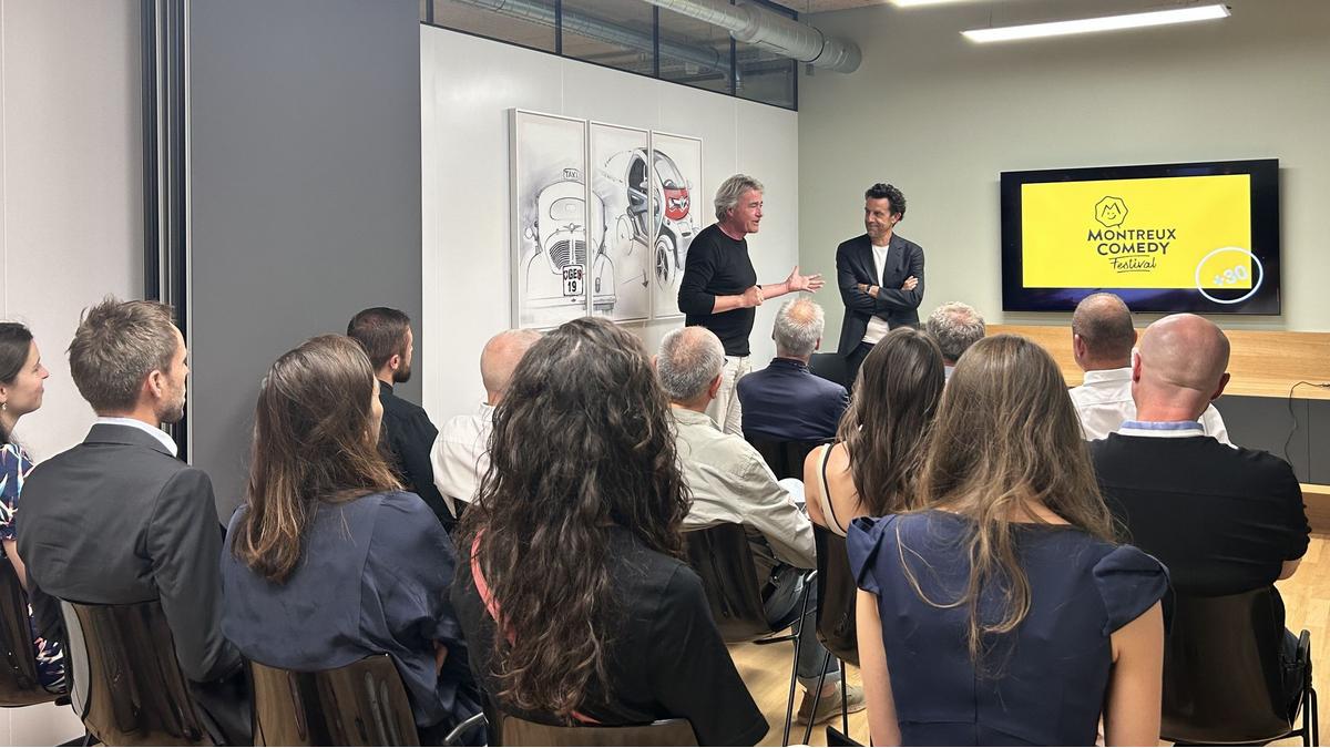 Retour en images sur la Conférence-Cocktail "L’odyssée franco-suisse du Montreux Comedy Festival" avec Grégoire Furrer, Fondateur et directeur du Montreux Comedy Festival et Edouard Lambelet, Group CEO de GF Production, qui s'est tenue le mercredi 28 juin 2023 au Booster Genève.