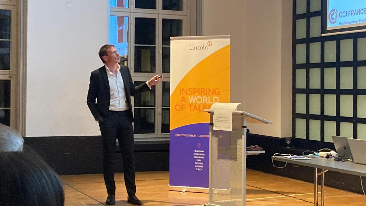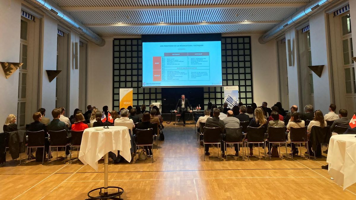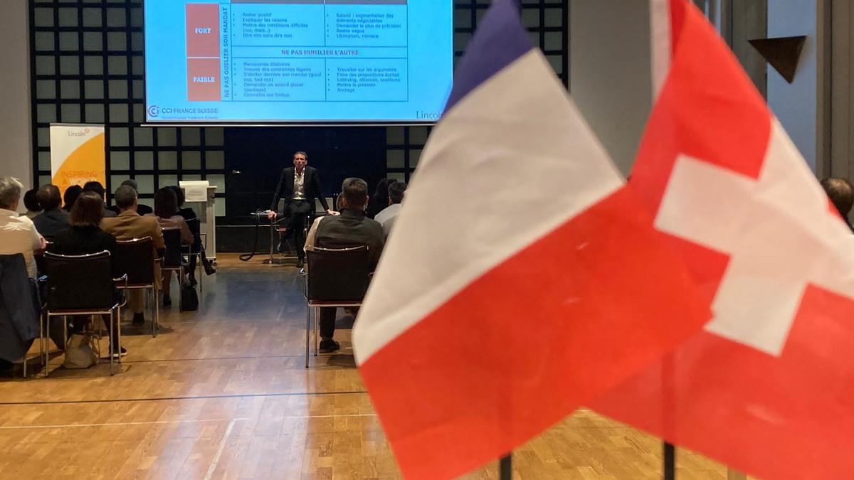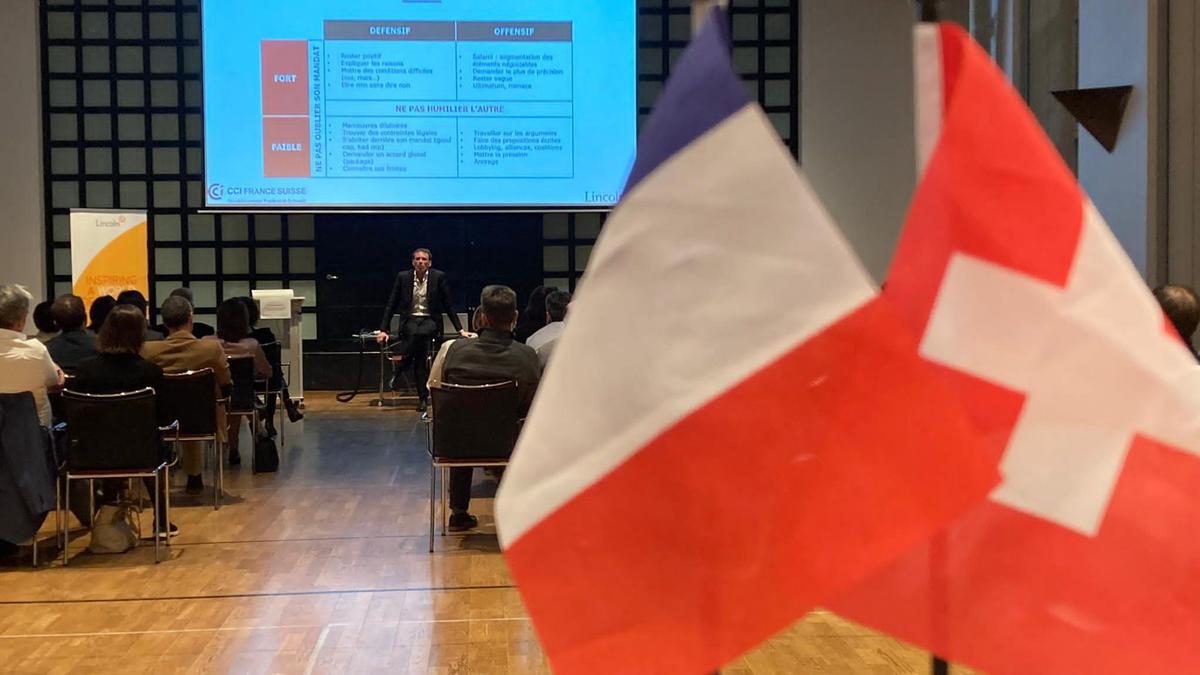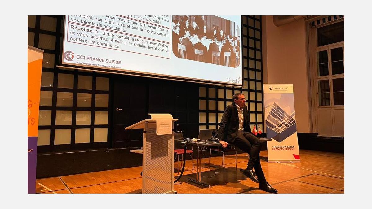 Après quelques mots d'accueil de la CCI France Suisse par Emilie, ainsi que par Caroline de la Cochetière, Lincoln, Eric le Deley a pris la parole sur ce que nous apprennent les grandes négociations de l'Histoire.