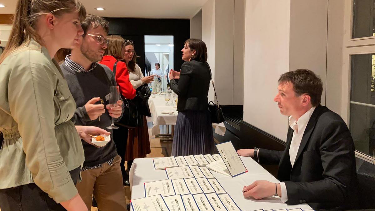 Les échanges se sont ensuite poursuivis lors du cocktail dans une ambiance chaleureuse et conviviale. Chacun a pu rentrer chez soi avec un souvenir matériel de cette mémorable soirée : extrait de l'Encyclopédie d'Yverdon, l'article "Négociations ou l'art de négocier" fut réédité par la CCI France Suisse et Lincoln, spécialement pour cette occasion et contient en première page une dédicace d'Eric Le Deley.