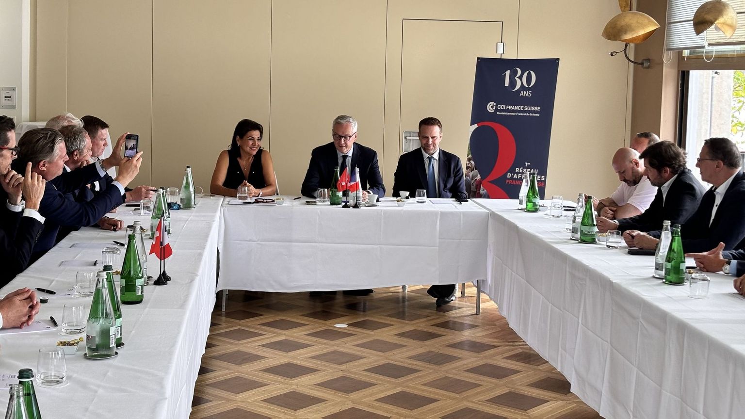 La discussion qui a traité divers aspects pratiques de la coopération franco-suisse, notamment les investissements réciproques et les échanges commerciaux entre les deux pays, a été marquée par une interaction dynamique entre le Ministre, Marc Ferracci et les participants, favorisant ainsi des échanges particulièrement fructueux.