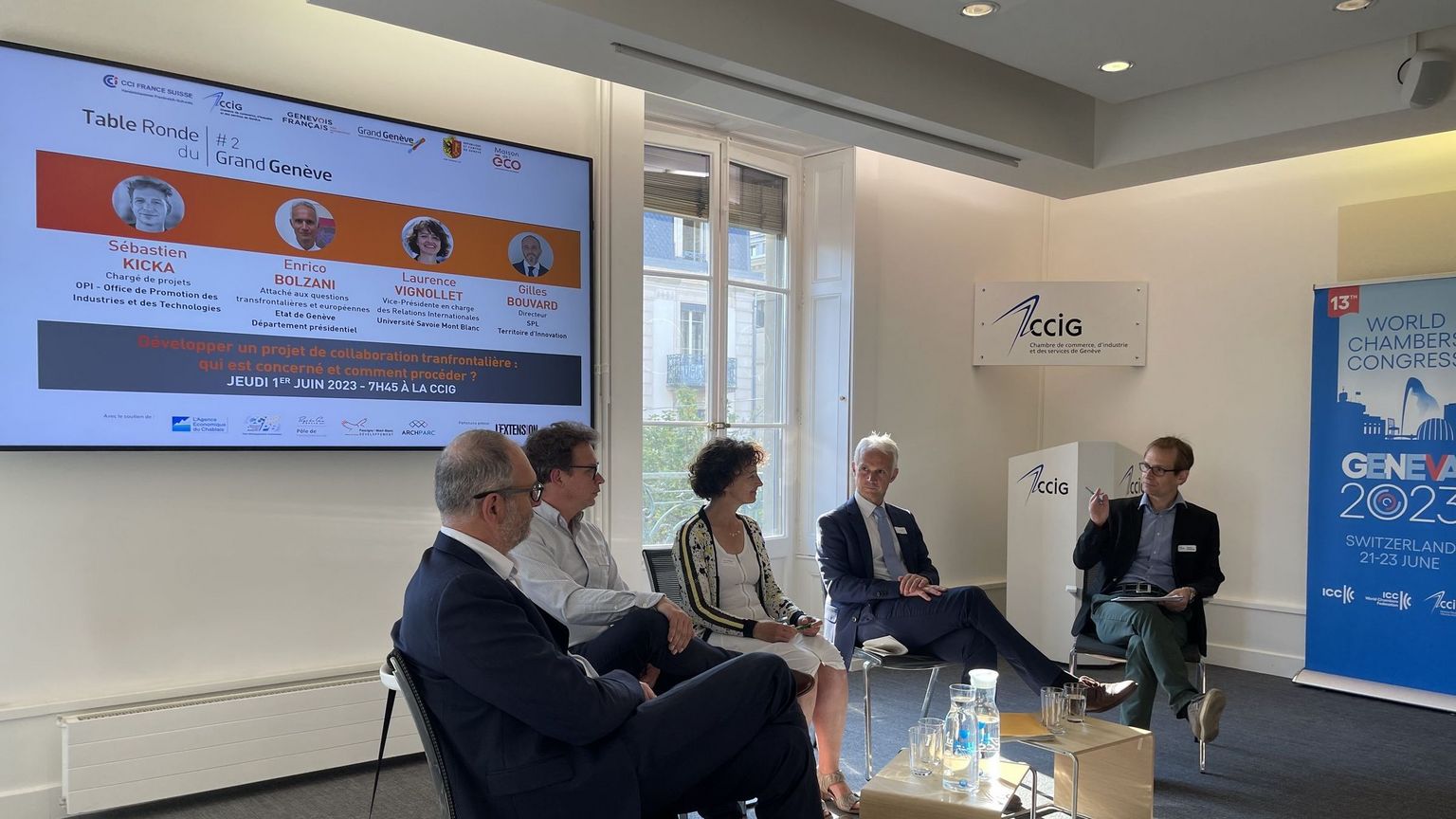 Le jeudi 1er juin 2023 s'est tenue la deuxième Table Ronde du Grand Genève de l'année à la CCIG avec plus de 40 participants en quête d'informations et de conseils pour développer un projet transfrontalier.