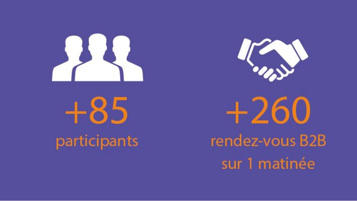 Le e-B2B Franco-Suisse #8 s'est tenu le vendredi 12 mai 2023 et a accueilli 85 entreprises telles que le Promotion économique du canton du Jura, altamedia, UBS, CHEOPS TECHNOLOGY, Hôtel des Horlogers, Air France, b-sharpe, Swibeco, Air France, UBS, Definitely Different Group, Hilton Geneva Hotel & Conference Centre, TGV Lyria et bien d'autres. Plus de 260 rendez-vous d’affaires se sont tenus sur la matinée et ont permis des échanges de qualité entre les participants.