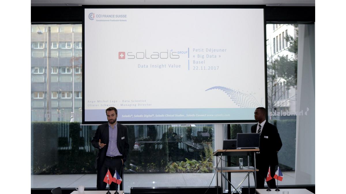 Tout au long d’un exposé interactif d’une heure, Monsieur Olivier Schwartz, Responsable du développement international de Soladis et de sa filiale suisse, et Ange Michel Lago, Expert en sciences des données au sein du groupe Soladis, ont pu se livrer à un exercice de pédagogie sur les clés de compréhension et la valeur ajoutée du Big Data, mais également dressé un panorama de ses défis et perspectives en France et en Suisse. Les participants ont pu en outre échanger avec le public sur des cas pratiques, notamment un étude de cas récent en partenariat l'Université de Genève.