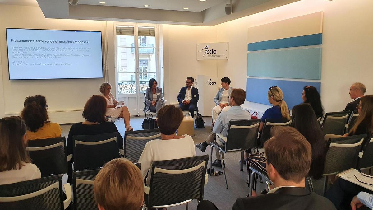 A cette occasion, Isabelle Amschwand, Anne-Marie Loeillet et Thibault Reverse ont témoigné de leurs larges expériences dans un échange ouvert et interactif, avec aussi un éclairage transnational et international, certains d’entre eux siégeant dans le CA ou ayant une fonction dirigeante dans une entreprise active à la fois en Suisse et à l’étranger, en France notamment.