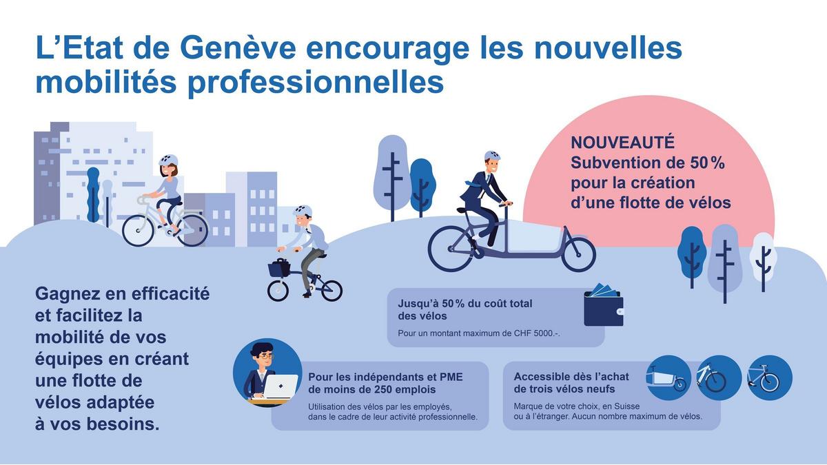 Le canton de Genève propose des aides pour encourager les flottes de vélos et les mobilités professionnelles durables.