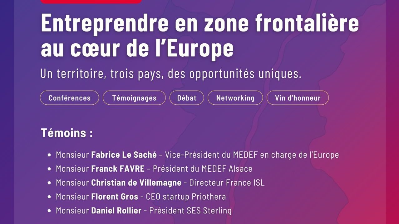 ?? ?? ??????? ????, Saint-Louis Agglomération aura le plaisir de co-organiser, aux côtés du MEDEF Alsace à l’Institut Saint-Louis (ISL), une table ronde exceptionnelle sur les enjeux de l’entrepreneuriat en zone frontalière.