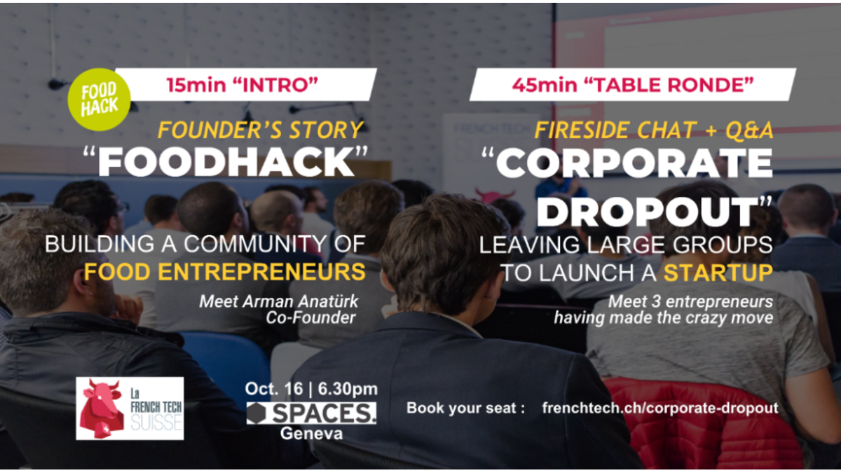 Membres Table Ronde "Corporate Dropout" + Founder's Story Le 11/10/2018 Le prochain event de La French Tech Suisse, le 16 octobre à Genève. En savoir plus