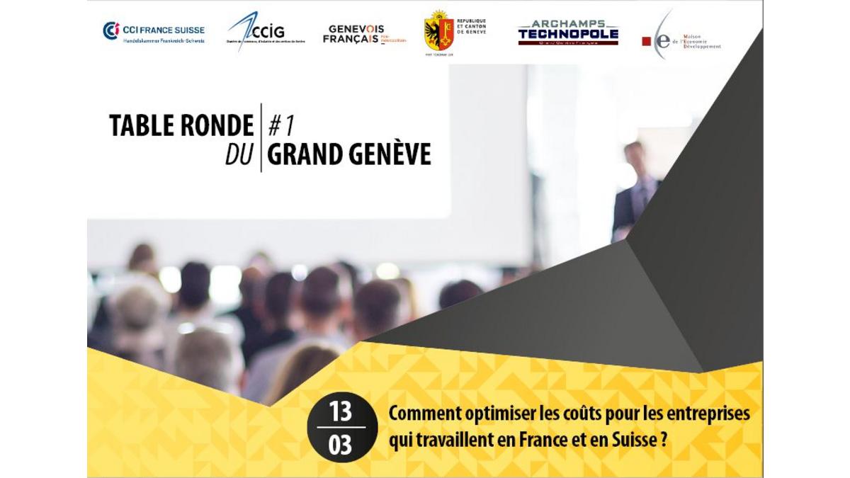 Rendez-vous mardi 13 mars 2018 à la CCIG à Genève pour la 1ère Table ronde du Grand Genève de l'année consacrée à l'optimisation des coûts pour les entreprises qui travaillent en France et en Suisse.