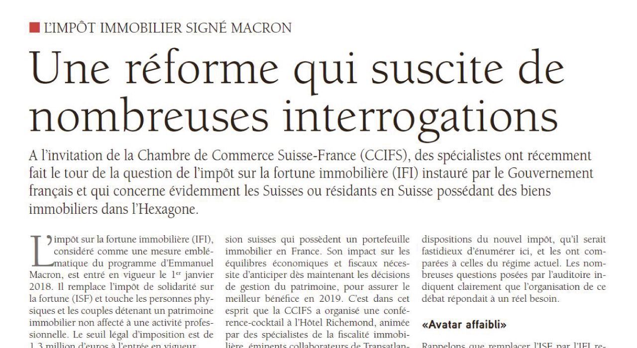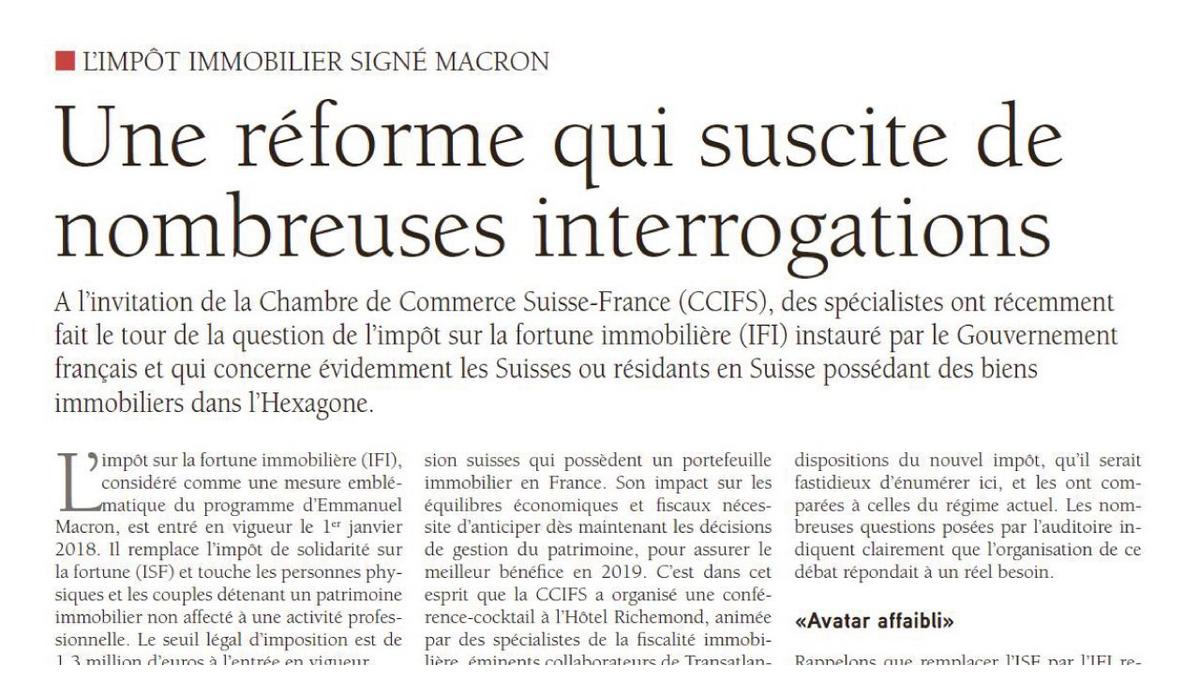 Le journal Tout l'Immobilier revient sur notre événement IFI organisé au Richemond en partenariat avec Mazars et Banque Transatlantique.