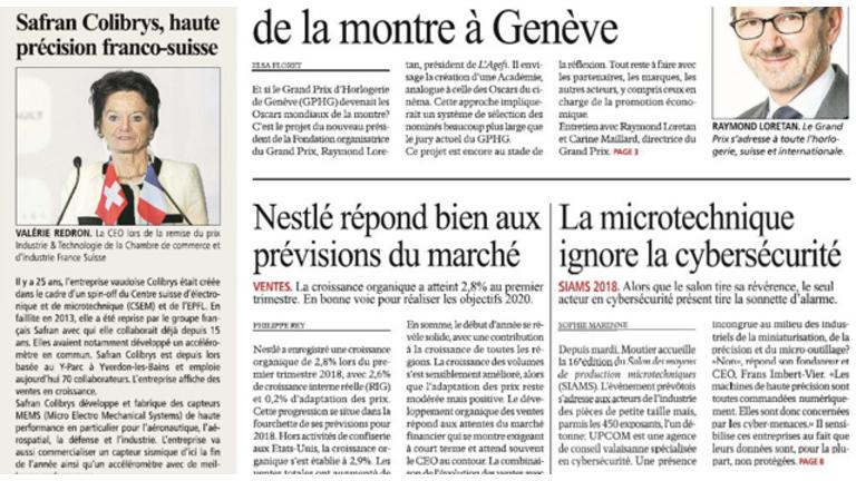 L'AGEFI revient dans son édition du jour sur l'entreprise Safran Colibrys, haute précision franco-suisse et lauréate des derniers Trophées CCIFS du…