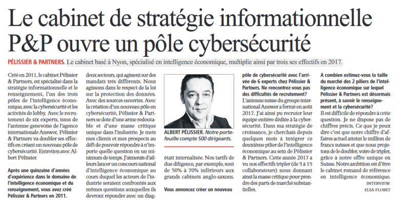 Le cabinet basé à Nyon, spécialisé en intelligence économique, multiplie ainsi par trois ses effectifs en 2017