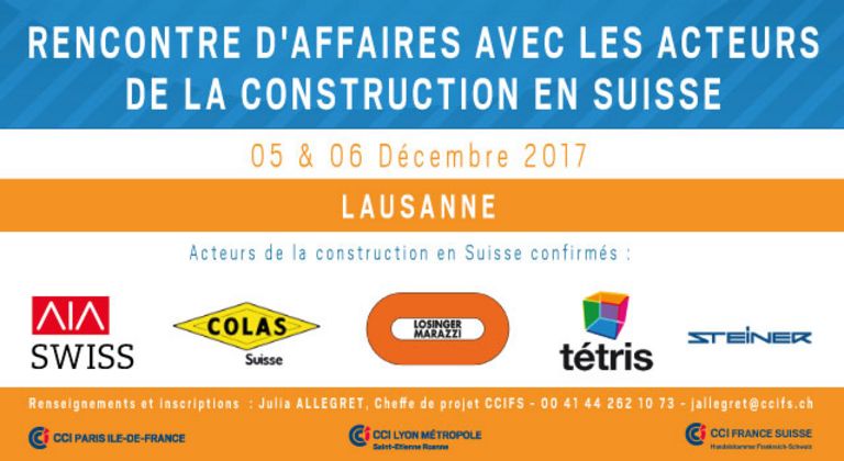 AIA SWISS SA, COLAS SUISSE, LOSINGER MARAZZI, STEINER AG ou encore TÉTRIS DESIGN & BUILD ont d'ores et déja confirmé leur présence !