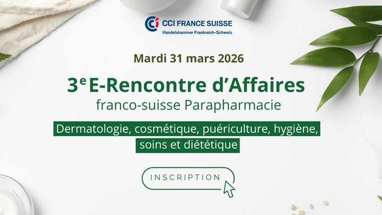 Rendez-vous le mardi 31 mars 2026 pour la 3e édition de la E-Rencontre d’Affaires franco-suisse dédiée au secteur de la Parapharmacie.