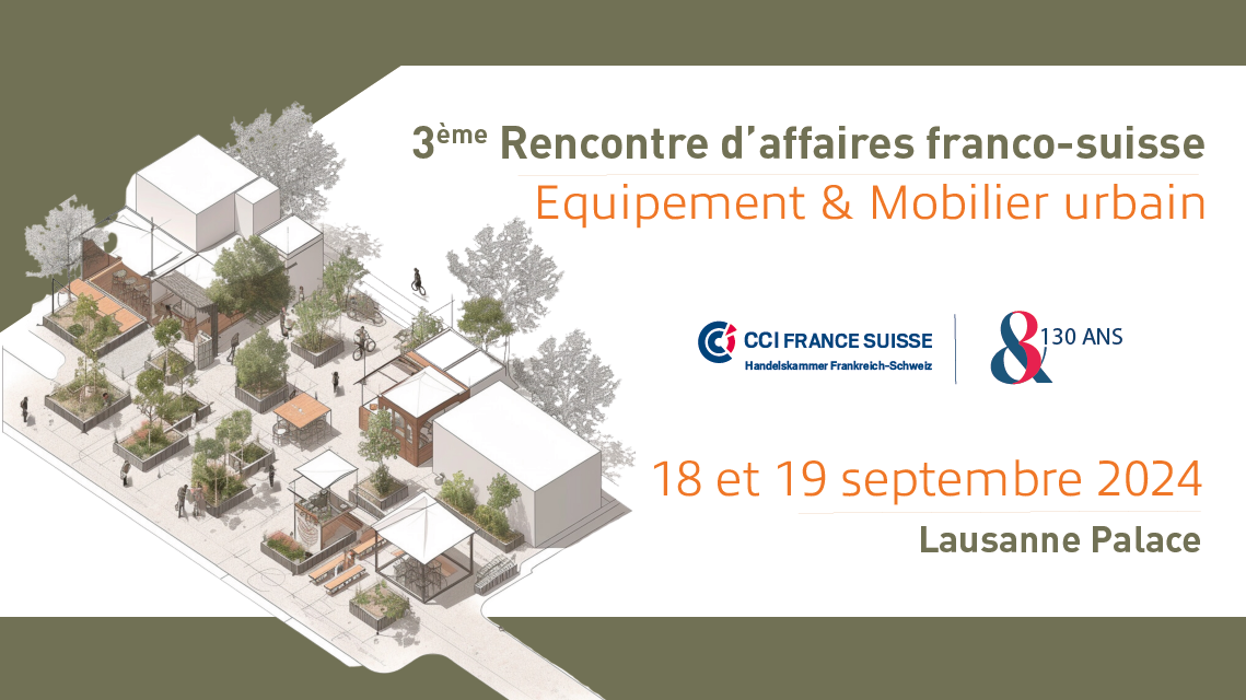Forte du succès des deux précédentes éditions, la CCI France Suisse vous donne rendez-vous le 18 et 19 septembre 2024 au Lausanne Palace, pour la 3ème Rencontre d’Affaires franco-suisse Equipement & Mobilier urbain avec les acteurs suisses référents du secteur.