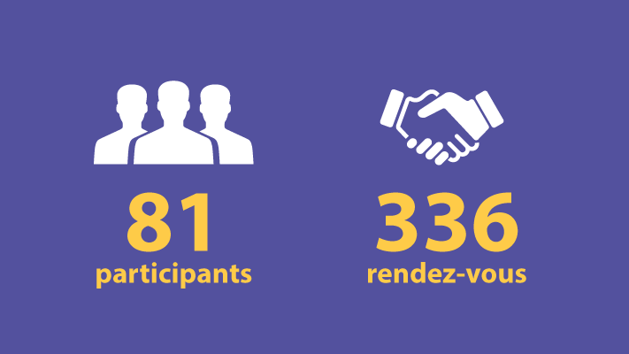 - Jusqu’à 9 rendez-vous de 20 minutes pour présenter votre activité et évaluer la possibilité d’une collaboration avec votre interlocuteur.
