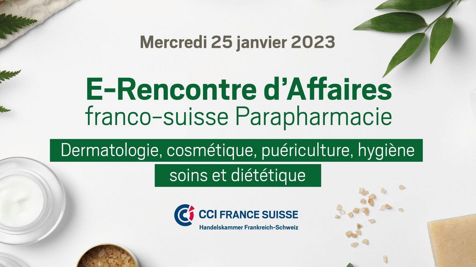 La CCI France Suisse vous donne ainsi rendez-vous le 25 janvier 2023 pour une E-Rencontre d’Affaires Franco-Suisse dédiée au secteur de la Parapharmacie, afin de développer vos contacts et ainsi faciliter votre développement en Suisse ! Un format 100% digital !
