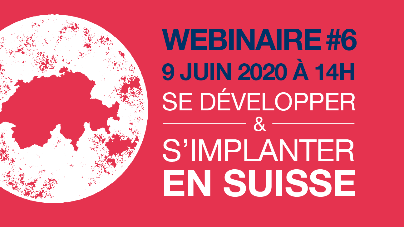 Rendez-vous pour le 6ème webinaire du cycle "Se développer et s'implanter en Suisse" mardi 09 juin 2020 à 14h.