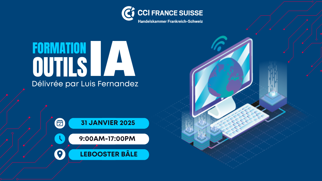 En vous inscrivant à cet événement, vous acceptez l'enregistrement de vos informations dans la base de données de la CCI France Suisse et des partenaires co-organisateurs de l'événement. Des photos et/ou des vidéos seront réalisées le jour de l’événement. En participant à la manifestation, vous autorisez la CCI France Suisse et les co-organisateurs de l'événement à les utiliser sur différents supports pour promouvoir leurs activités. Veuillez nous informer si vous ne souhaitez pas être photographié et/ou filmé.