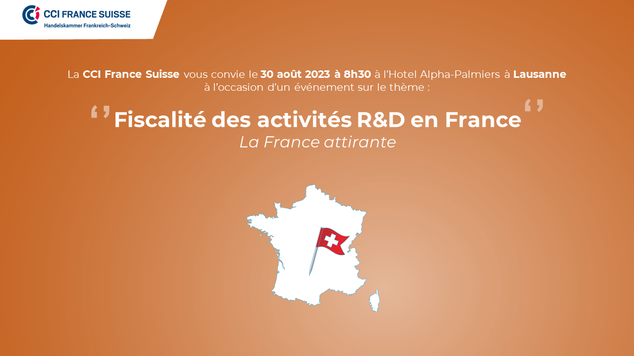 La CCI France Suisse a le plaisir de vous convier à son prochain petit-déjeuner conférence le mercredi 30 août dès 08h30, dédié au marché Français et axé sur la fiscalité des activités R&D.