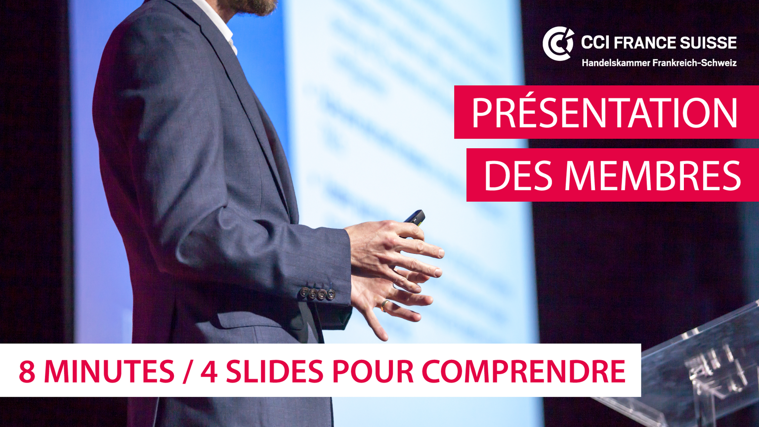 Cet événement, qui s'adresse aux membres CCIFS et inscrits au 12ème Forum d'Affaires Franco Suisse, débutera par une session de présentation dans un format 8 minutes / 4 slides par les membres suivants :