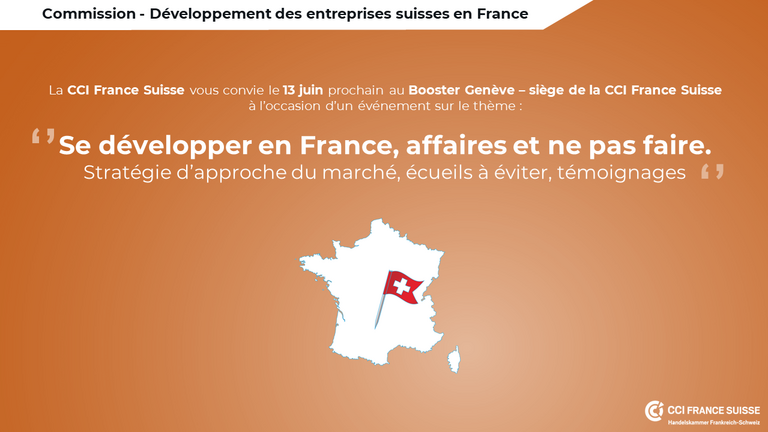 LeBooster GenèveRendez-vous le 13 juin dès 17h30 au Booster Genève pour une conférence dédiée à la stratégie d’approche du marché français et aux écueils à éviter.