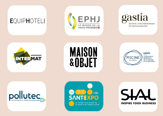 Notre bureau élabore et réalise les campagnes de communication de près de 20 salons professionnels français de tous secteurs (Maison&Objet, SIAL Paris, Pollutec, Intermat, etc.) auprès du public professionnel concerné en Suisse.